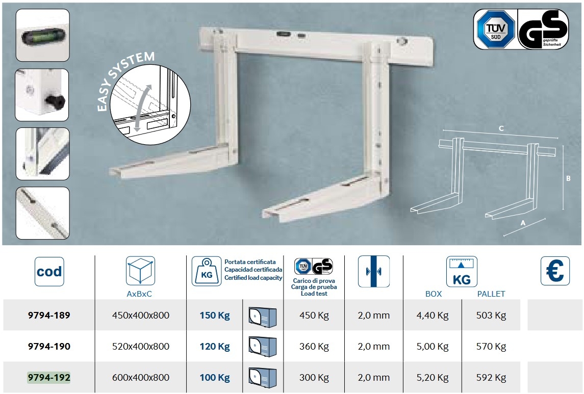 STAFFA PER CONDIZIONATORE PREMONTATA CON LIVELLA E PIEDINO REGOLABILE