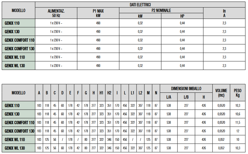 I modelli proposti si caratterizzano per la silenziosità nel funzionamento, ulteriormente migliorata nelle versioni Comfort.