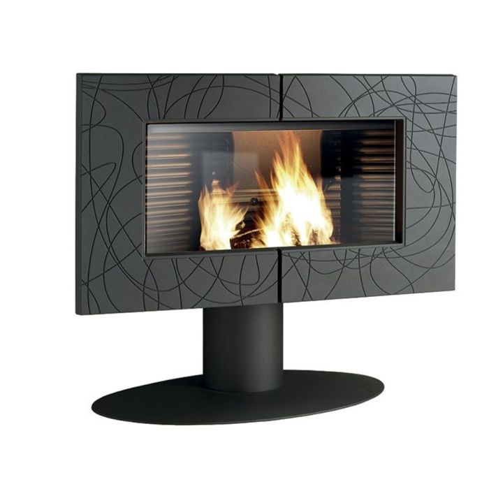 Stufa a legna ad aria calda a convezione naturale. Struttura in ghisa verniciata grigio antracite. Uscita fumi superiore.