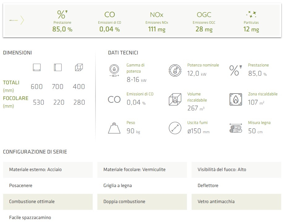 Descrizione / Stufa A Legna LACUNZA CALPE Ad Irraggiamento Per 107 m²