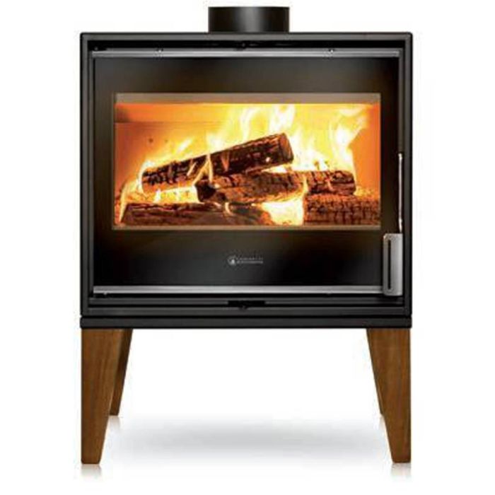 Stufa a legna dallo stile vintage, valorizzato da quattro gambe in legno.