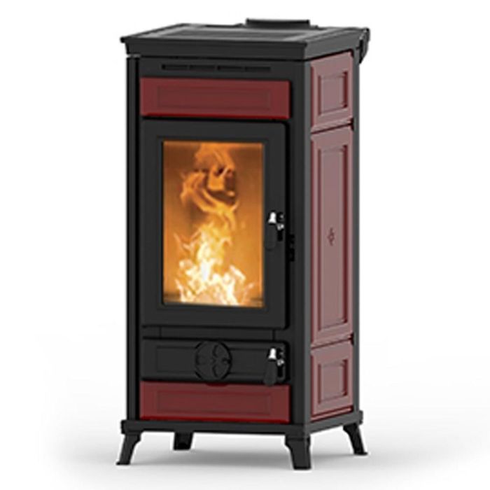 lungo grazie ad una serie di diffusori d’aria attorno al vetro. Easy cleaning, facilità di pulizia ordinaria e straordinaria. Candeletta resistente a basso consumo energetico, motori silenziati, ventilatore ambiente ermetico alla polvere garantito 4 anni. Canalizzabile con comando per la distribuzione dell’aria dal frontale al retro, basta un semplice gesto per orientare o parzializzare il flusso dell’aria. Capacità serbatoio 17,4 kg., coperchio in ghisa, termostato di sicurezza, sonda protezione serbatoio, pannello