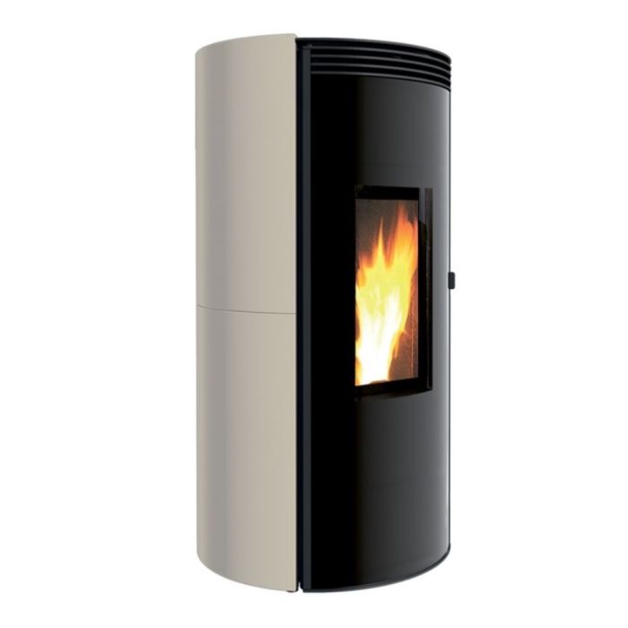Ethica Evo è la stufa dalla forma circolare e dal design elegante. La porta è caratterizzata da un vetro verniciato nero. La porta interna segue la curvatura, mentre il grande vetro permette un’ampia visione del fuoco. Le asole del top seguono la forma della stufa. I fianchi in maiolica sono lisci, senza asole e avvolgono il top sagomato. La camera di combustione è decorata con un elegante motivo. ll rivestimento di Ethica Evo è in maiolica, la struttura in acciaio verniciato. Ethica Evo è disponibile in quattro colori: bianco, bordeaux lucido, pergamena e nero.