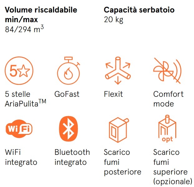 Il morbido raccordo decorativo, disponibile in 3 finiture, unito alla certificazione ambientale 5 stelle, la tecnologia Flexit ed il sistema di accensione rapida GoFast, la collocano tra i prodotti di punta dell’intera gamma.