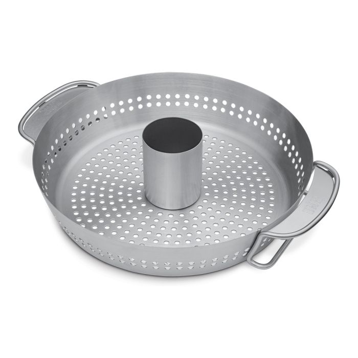 Un supporto per la cottura del pollame fuori dell’ordinario. Il versatile design 2-in-1 del supporto per pollame Gourmet BBQ System ti consente di cucinare il pollo e i contorni contemporaneamente. Prepara un pollo croccante ma ancora succoso, mentre le verdure cuociono lentamente all’interno del supporto. Riempi di liquido il contenitore centrale per un pollo davvero succulento, oppure rimuovilo per usare l’intero cestello forato per cucinare verdure o contorni.