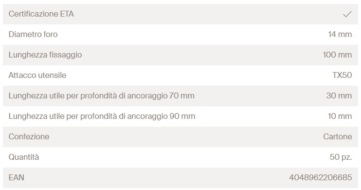Approvazione ETA: permette l'utilizzo su numerosi materiali edili, garantendo al tempo stesso un fissaggio sicuro.