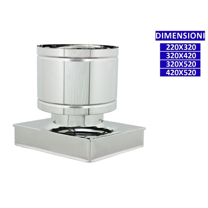 Descrizione / ALLINOX Terminale a Botte Acciaio Inox Canna Fumaria Comignolo Base Rettangolare