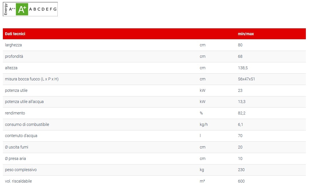 Struttura in acciaio di forte spessore saldata a robot, vetro ceramico resistente a shock termico 800°, comando automatico meccanismo by-pass fumi, serranda regolazione aria combustione.