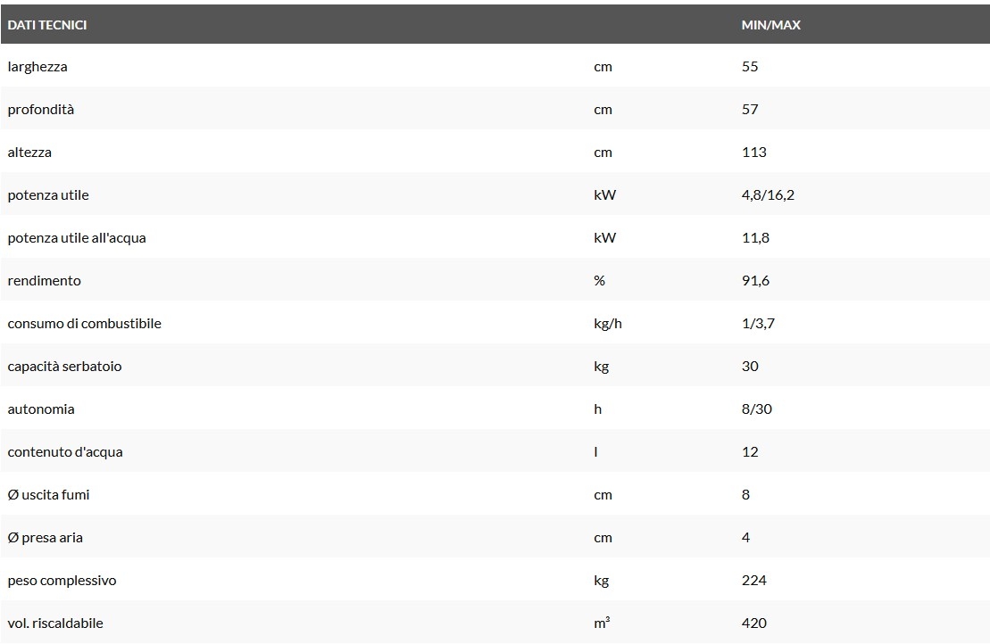 Descrizione / Termostufa a Pellet 16,2 Kw EK63 DORE160 H Stufa Idro
