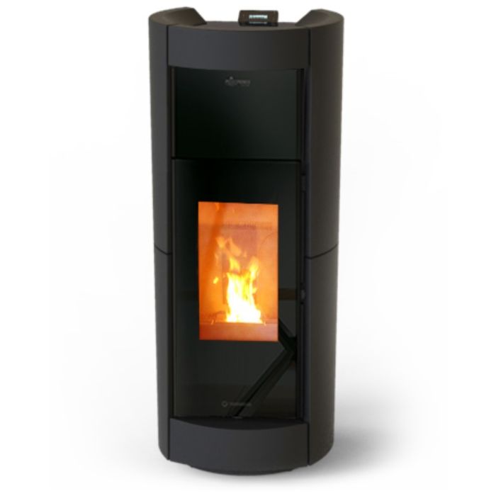 Termostufa a pellet dotata di bruciatore autopulente brevettato con tecnologia Pelletpower®: permette di mantenere la resa termica elevata e costante e ridurne i costi di esercizio (consumo e manutenzione). Serbatoio di 30 kg, esclusivo sistema di accesso al serbatoio attraverso lo scorrimento del coperchio in cristallo nero. Pannello digitale LCD, crono settimanale con 3
