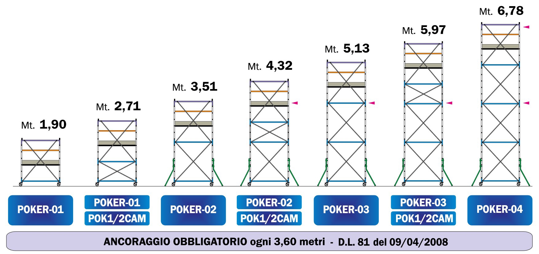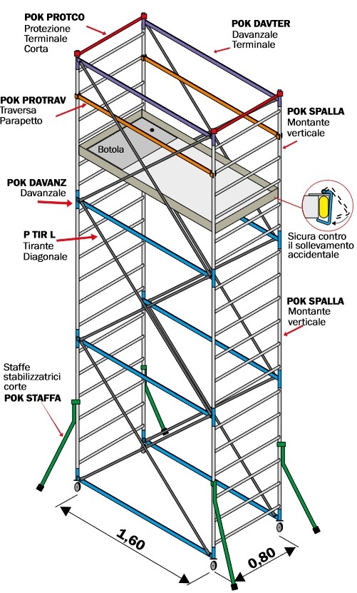 Descrizione / Trabattello FRIGERIO Poker 01 Ponteggio Professionale Zincato Base 160x80 Altezza 190cm