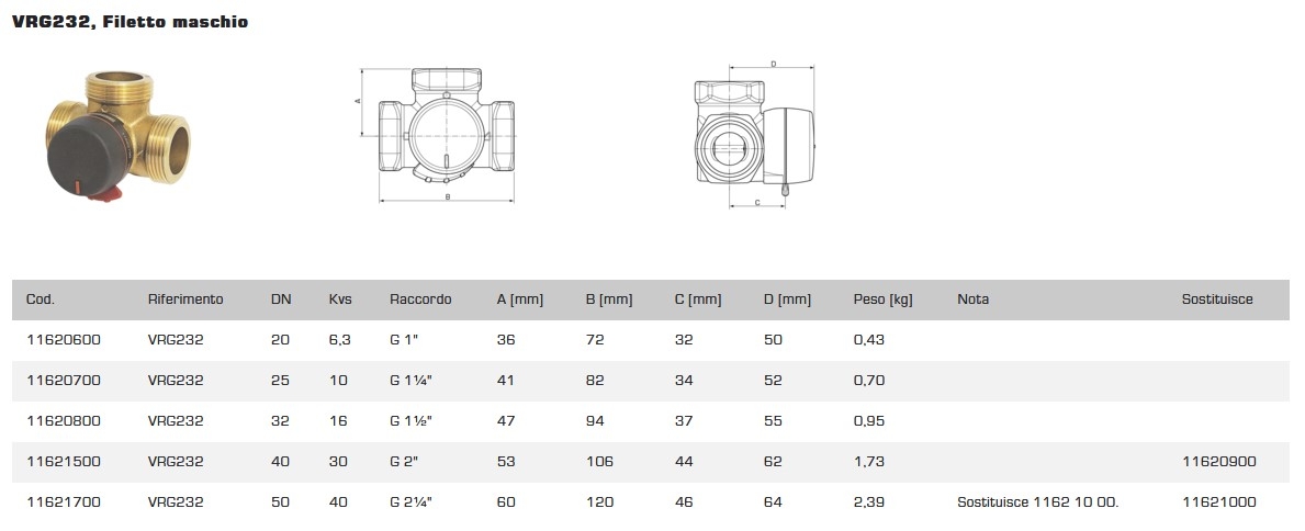 Descrizione / Valvola 1" Di Commutazione ESBE VRG232 a 3 Vie Cod.11620600
