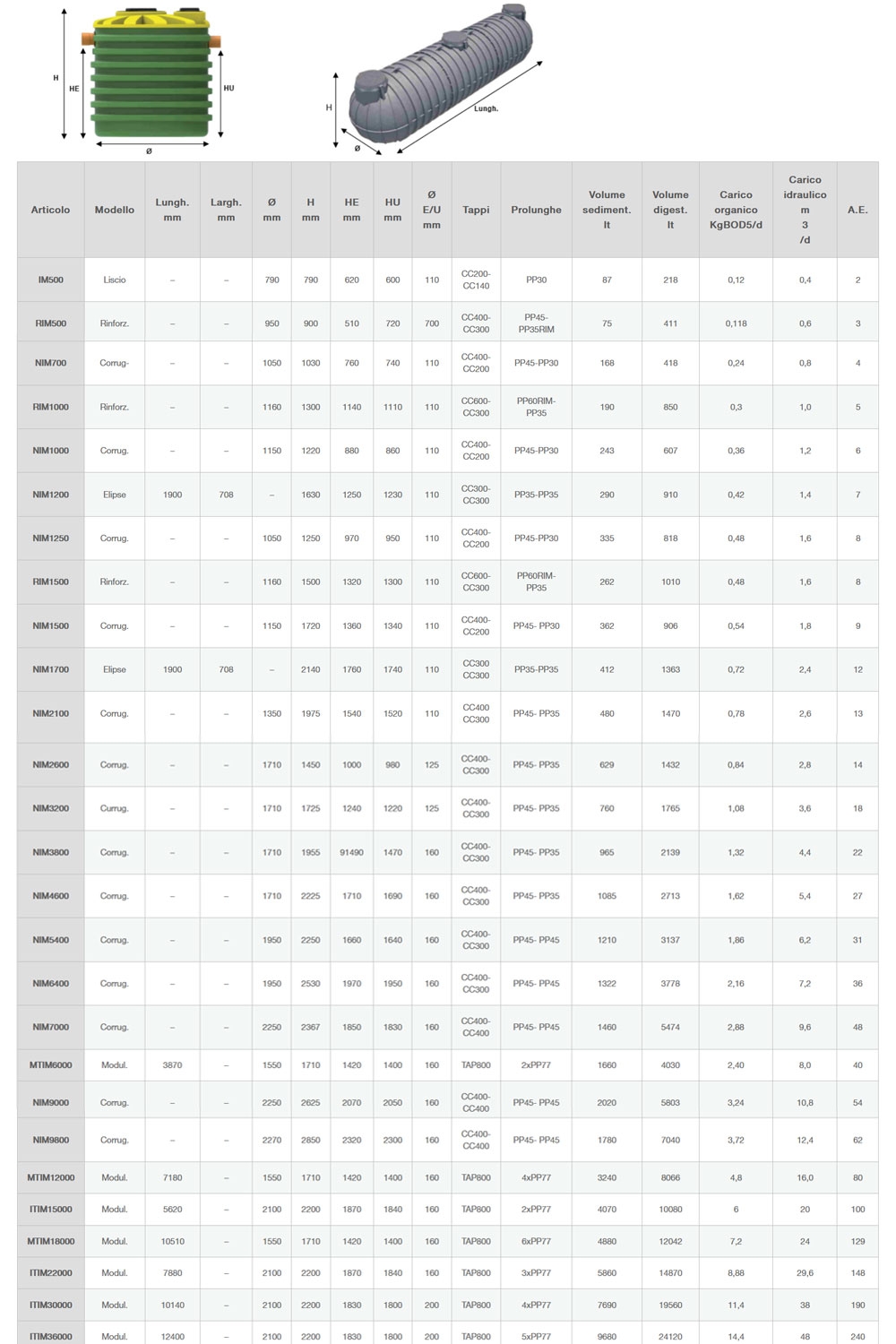 Nella tabella seguente, i dati di progetto utilizzati per il dimensionamento delle vasche Imhoff Rototec
