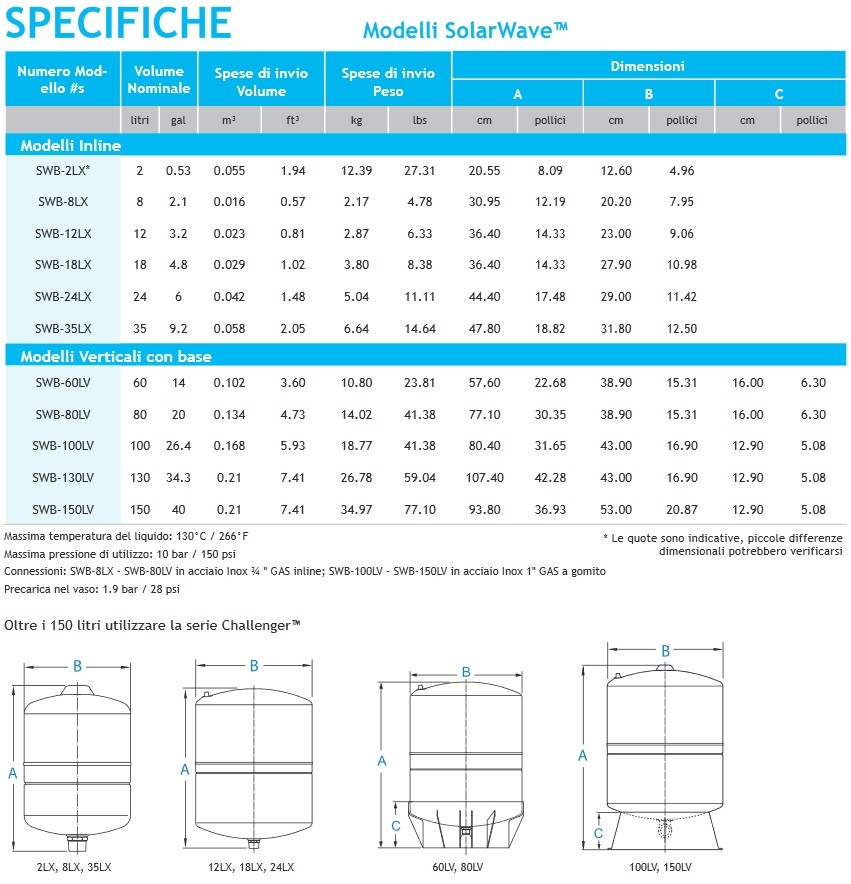I serbatoi Solar Wave™ sono progettati seguendo gli stessi severi criteri applicati per le linee Pressure Wave™ e Challenger™.