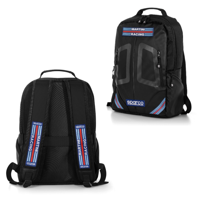 Design aggiornato ed impreziosito dell'iconico zaino stage con speciali patch gommate martini racing e sparco