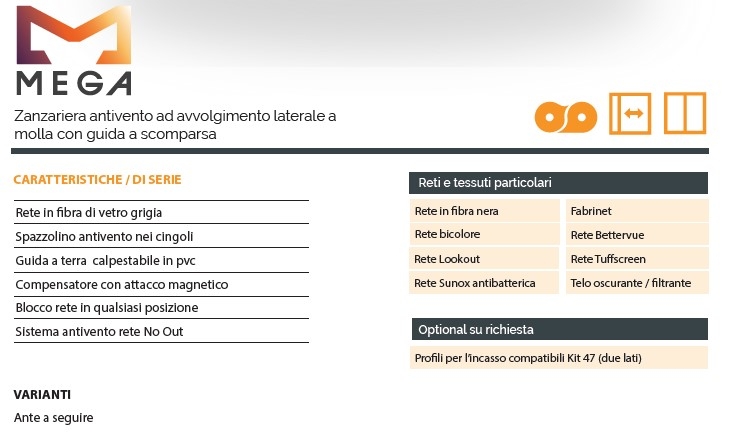 MEGA è la nuova zanzariera studiata, progettata e prodotta direttamente da Effezeta System.