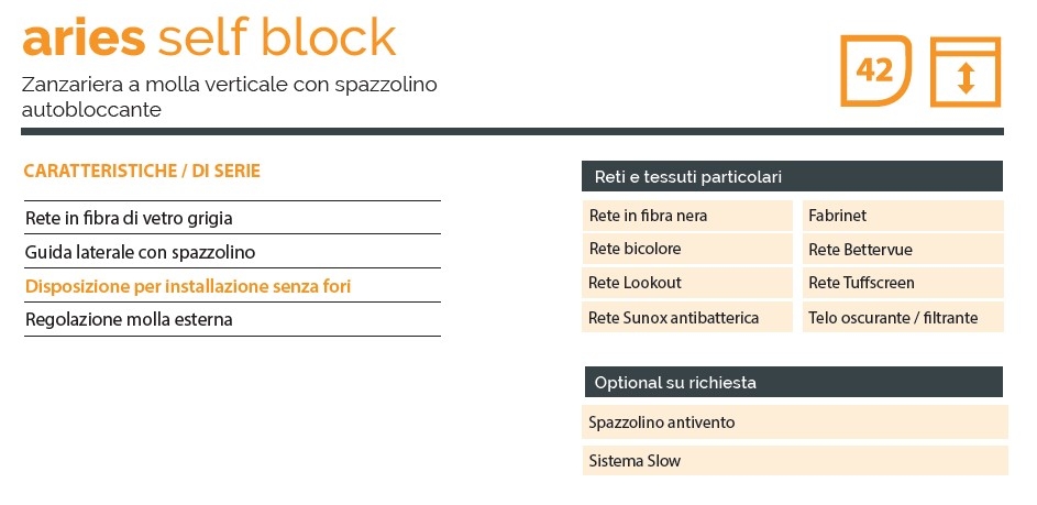Descrizione / Zanzariera Avvolgente Personalizzabile ARIES SELF BLOCK Con Spazzolino Autobloccante